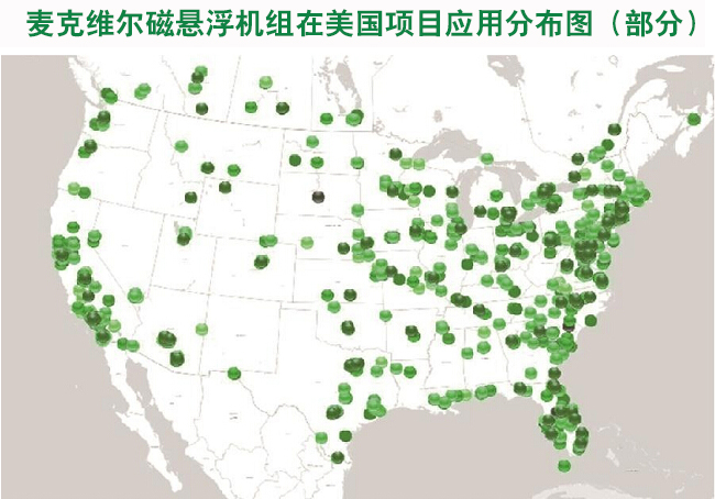 麥克維爾磁懸浮機組在美國項目應用分布圖