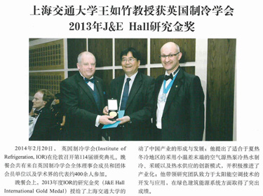 2014年2月20日,英國制冷學會(Institute of Refrigeration,簡稱IOR) 第114屆頒獎會在倫敦舉辦。英國制冷學會全體理事會成員、團體會員單位和學術界代表等400余人出席了此次會議,會上頒發了2013年度J&E Hall研究金牌。上海交通大學機械與動力工程學院王如竹教授從來自...