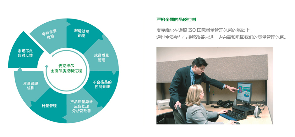 麥克維爾在制定業務策略時,一直將品質的重要性放在重要位置,并在所有業務范疇積極發展及落實全面品質概念;承諾以優質的服務、充足的資源投入及極具競爭力的成本架構,為客戶提供優越的產品及服務。
