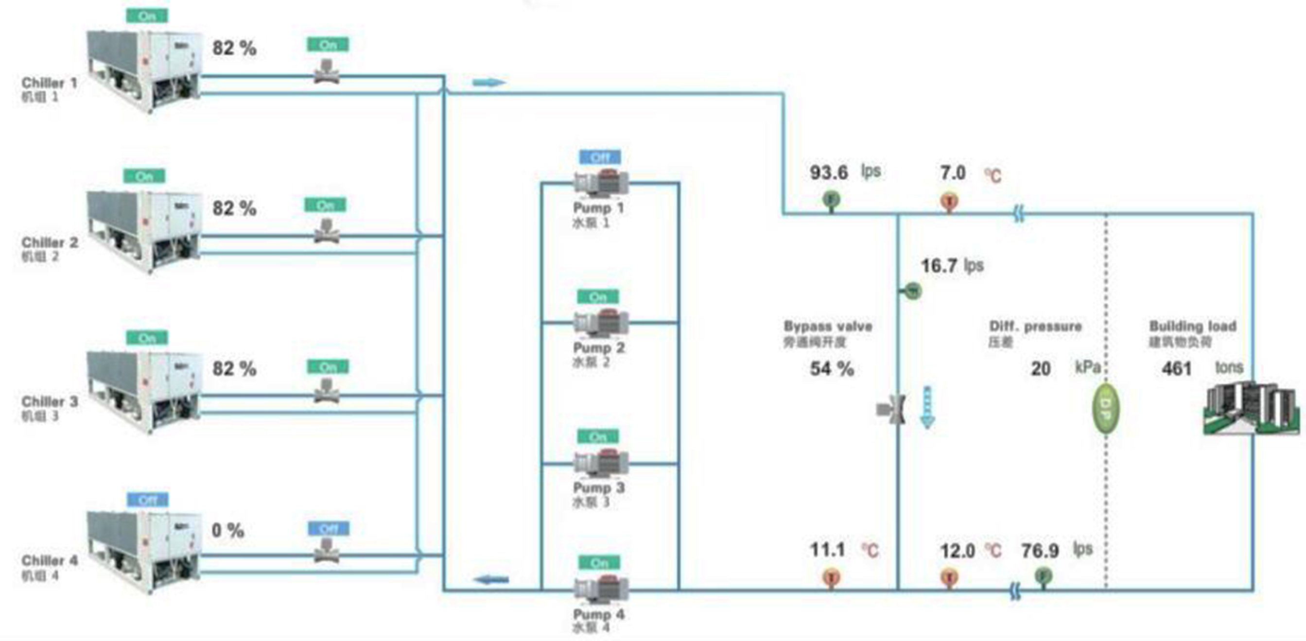 根據末端負荷變化,實時優化系統的運行,實現節能