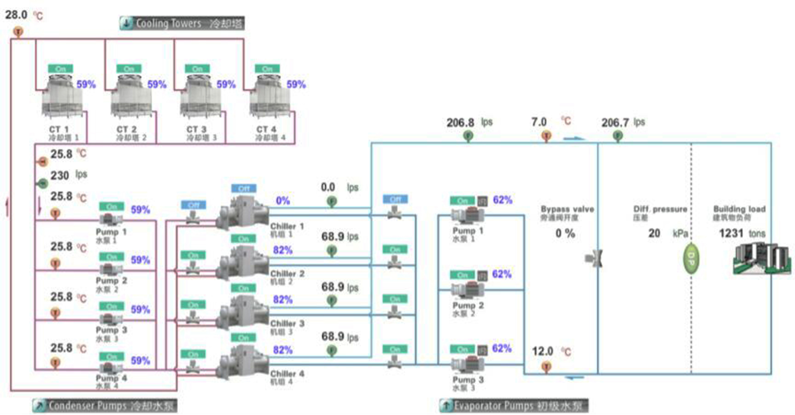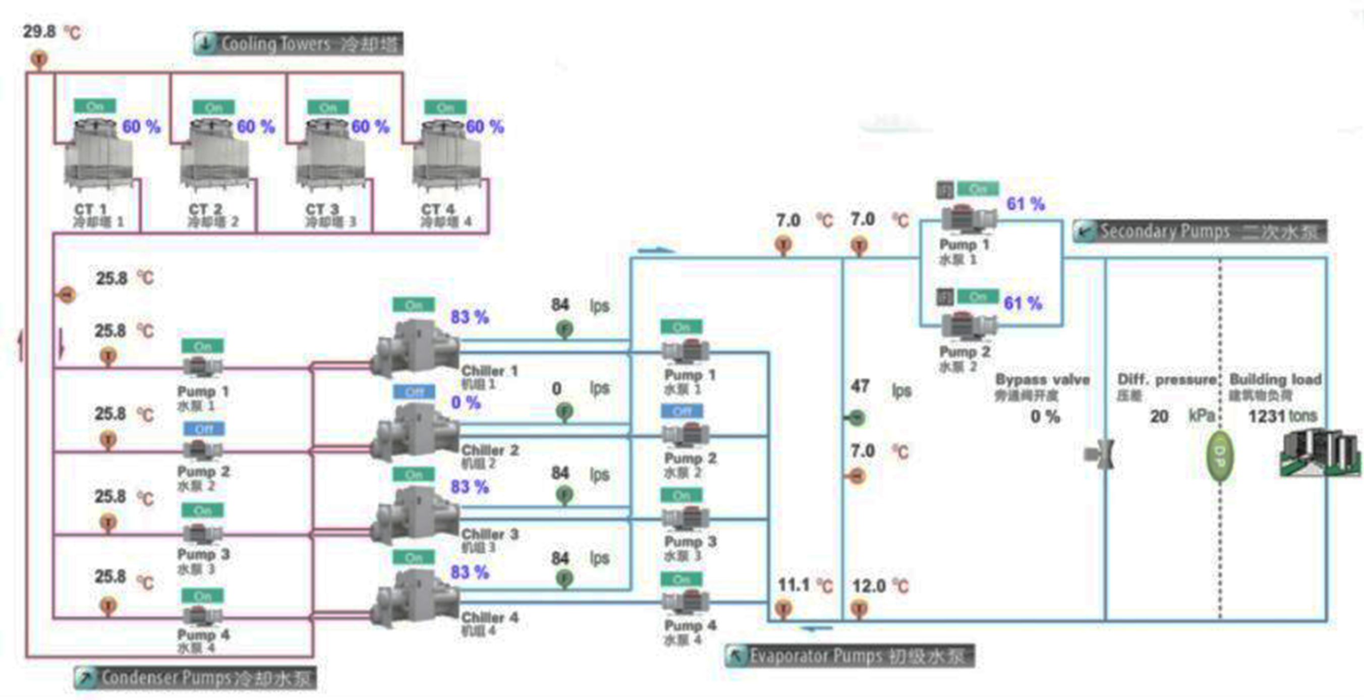 水冷機組一二次定流量系統